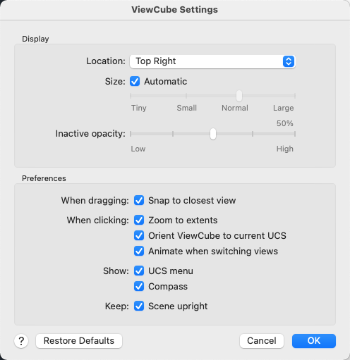 Select Automatic to have the size of the ViewCube tool adjust based on the current size of the active viewport, zoom factor of the active layout, or drawing window.