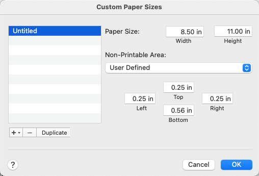 : Paper Size: Manage Custom Sizes