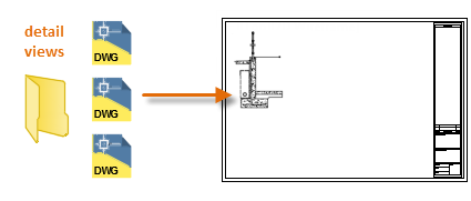 In the following example, a drawing file is inserted into the current drawing to provide a standard detail view.