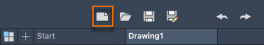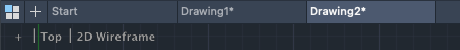 The new drawing, Drawing1, starts on a new tab that's just above the drawing area. You can click the tabs to switch between several open drawing files. Click the plus sign to start a new drawing using the default template.