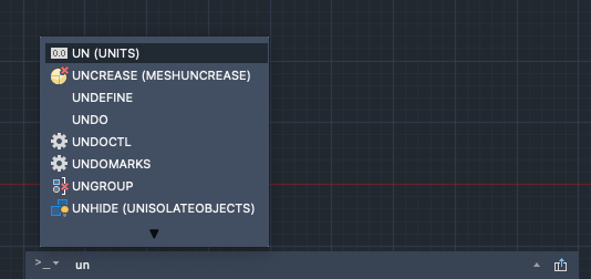Notice that as you start to type a command, it completes automatically. When several possibilities are available such as in the example below, you can make your choice by clicking it or using the arrow keys and then pressing Enter or the Spacebar.