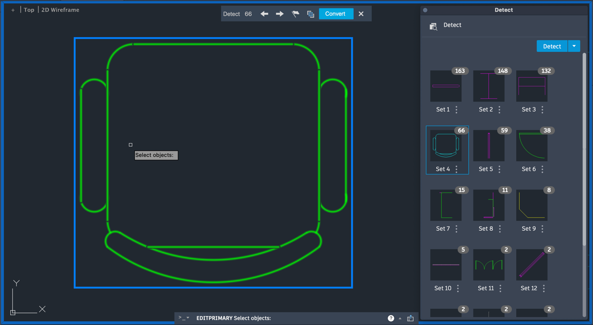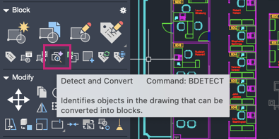 You can now easily start Detect and Convert from the Block tool panel (Drafting tab).