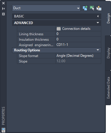 Advanced properties (includes duct flex properties)