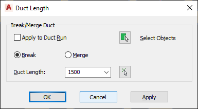| break a segment | select Break, and enter a value for Duct Length. You can also click |