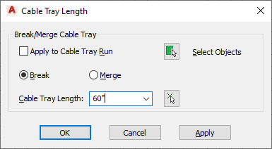 | apply the length to the entire run | select Apply to Cable Tray Run or Apply to Conduit Run. |