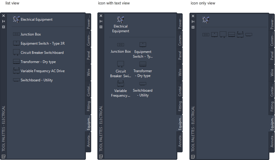 | tool images and names | Icon with text for View style. |