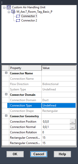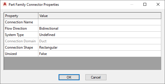 | Unsized | select True or False. Selecting True allows the connector to be unsized and valid connections to be made with unsized segments. |