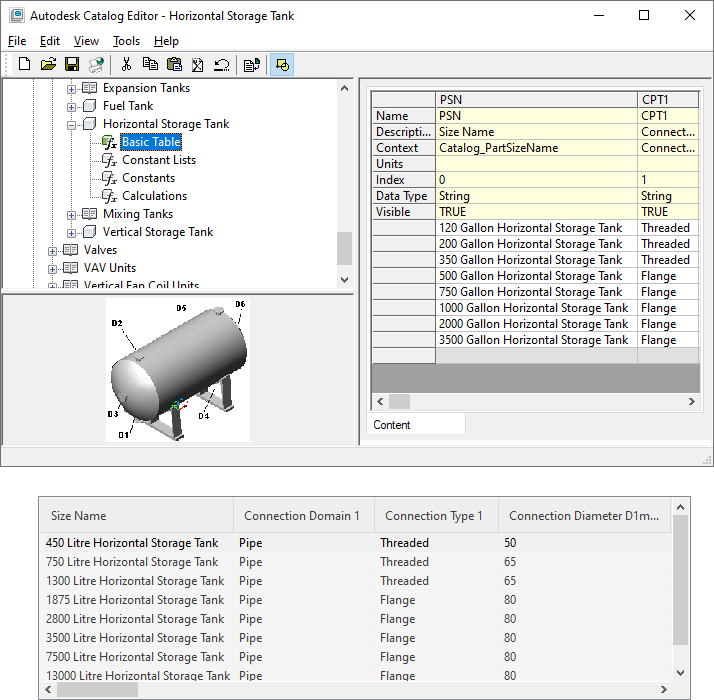 Viewing part sizes in Catalog Editor and in the part size table of the Add dialog box