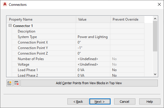 | specify a type of circuit for the connector | select a system type for System Type. Note: If you select Power and Lighting, you can configure additional connector properties, such as voltage and load.