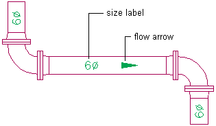 You can add annotation, such as labels and flow arrows, as you lay out the pipe run. You can configure label styles to display pipe diameter or system type properties.