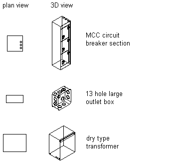 Usually, you add devices in plan view to produce construction documents, but you can also display parts differently in different views. For example, in a 3D view of an electrical system, you can display the real-world geometry of the devices, while in a 2D plan view you can represent them as one-line symbols.
