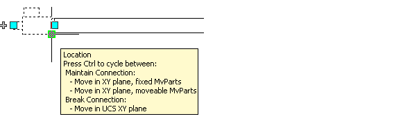 The grip editing mode determines how the action you perform using a grip is executed by AutoCAD MEP 2027 toolset. If a grip has multiple editing modes, the software lists them in the grip tooltip, and you must specify the mode to use.