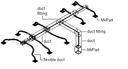Building systems are typically assembled from fabricated, off-the-shelf components. Catalog-based content refers to objects defined by part definitions and associated part models, and that are grouped into part catalogs. The part catalogs included with AutoCAD MEP 2027 toolset offer an extensive collection of parts for use during design. You can query the part catalogs to assist with part selection, retrieve parts for integration into your designs, and store parts you create in a catalog for future use.