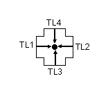 Each trim length is defined from the center, or intersection point, of the fitting to an end, or connection point, of the fitting. To ensure components are trimmed correctly when placing a parametric part into a drawing, you must define trim lengths for the part in a specific order—left to right, then bottom to top. The number of trim lengths required for a part depends on the type of fitting and the number of connection points, as shown next: