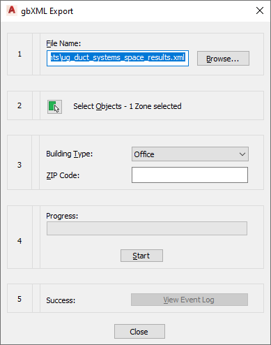 After you create spaces and group them into zones, you can export the information to a file in the Green Building XML (gbXML) format as follows.