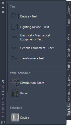 - In the Electrical tool palettes set, click the Tag and Schedule palette.
