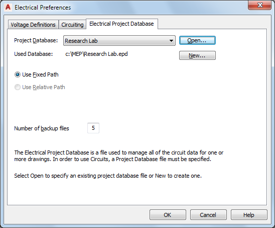 - In the Electrical Preferences dialog box, click the Electrical Project Database tab.