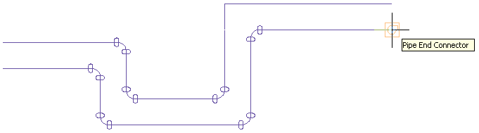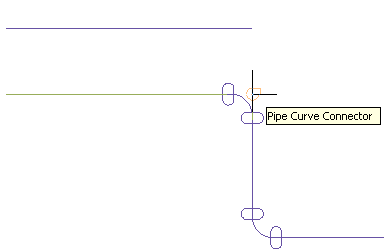 Note that for elbows and other curved fittings, a pipe curve connector is displayed at the logical intersection of the fitting centerlines. This ensures that the pipe is offset the specific distance along the entire parallel run.