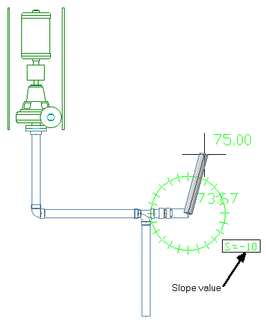 A pipe segment can have a slope value specified on the Pipe Properties palette, or it can have a different slope depending on a particular routing solution that is used. The immediate visual indicator tells you exactly what solution is used and the associated slope value. To turn off this feature, enter PIPESLOPEDISPLAY on the command line. Then enter n at the next prompt.
