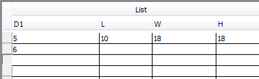 The values are used to create the list of part sizes. To enter a value in a cell, double-click the cell, and then enter the value. To access the Copy, Paste, and Clear commands, right-click the cell.