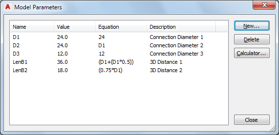 - To modify the default, or to specify a calculated value for the length of the trunk and branch, in the part browser, expand Model Parameters, right-click a length dimension, and click Edit.