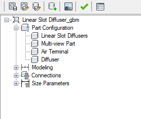 When the parametric building environment opens, the first folder in the part browser is the Part Configuration folder. The part configuration defines the characteristics and behavior of the part according to the domain, type, and subtype, and it is required to save the part. To ensure that the part can be validated and saved correctly, you should define the part configuration before starting to model the part.