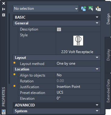 Tip: To facilitate annotation and scheduling, you can use the properties of device tools to specify property sets and tags, so they are automatically attached to devices when they are added to drawings. A property set is a user-defined group of related properties, such as a part number or a manufacturer’s name. A tag is a symbol that can display the data in a property set attached to an object. For more information on annotation and scheduling, see Creating Construction Documents.