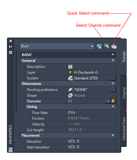 select the objects in a domain, such as, in the Duct domain, duct segments, fittings, or flex duct