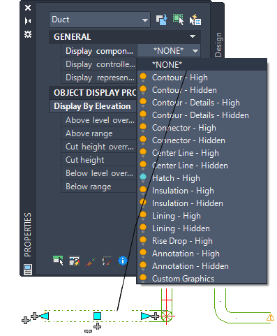 You can also configure elevation-based display components that apply to a particular object in the drawing using the Display tab of the Properties palette.