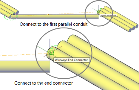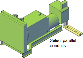 - Select the parallel conduit or pipe. Ensure that you select the end connector point on the conduit or pipe.