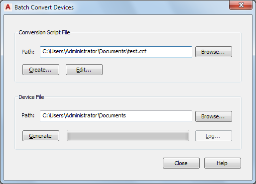 | use an existing script, such as a customized version of a script generated from converting existing device styles to blocks. | click Browse, select the script, and click Open. Note: To make changes to the script prior to using it, click Edit, and modify the script using the Edit Device Script dialog box. For more information, see Modifying Device Conversion Scripts.