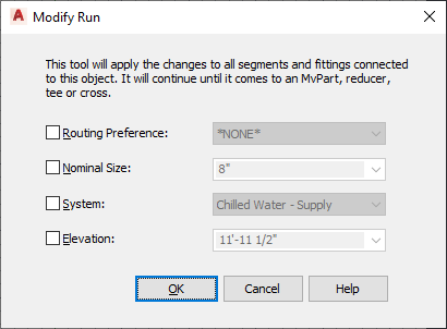 Modify Run dialog box (for pipe or conduit)