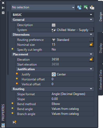 By default, Basic properties are displayed on the Pipe Properties palette.