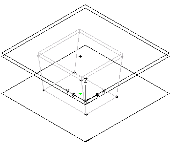 - In the modeling area, select the XY plane as the reference work plane, drag the cursor above the XY plane, and enter 1" (25 mm) for the offset distance.