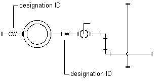 When you draw a schematic line, you can select a designation for the line on the Properties palette. The designation is a text ID that helps you to identify the line in the layout. The style you select for the line determines the list of designation IDs from which you can choose; you can select an ID from the list or enter a different one.