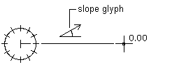 As you draw plumbing lines with a defined slope percentage, the software displays a slope glyph that indicates the direction of the slope and whether the slope angles is in an up or down direction.