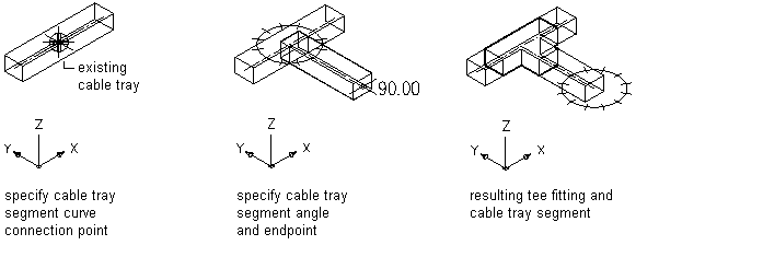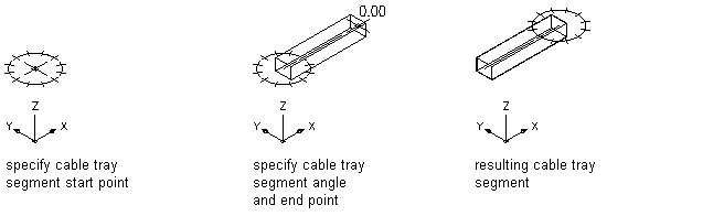 A cable tray or conduit run is made up of individually drawn segments. You draw a segment by specifying its properties, and then specifying points in the drawing.
