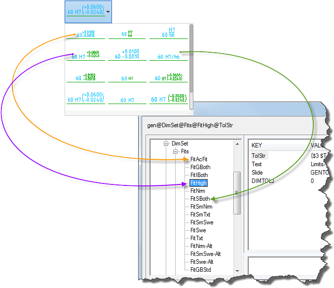 If the predefined set is inadequate, you can use the System Editor and create your own customized fit representations and tolerance methods. The information on this page explains the related System Editor entries and keys.
