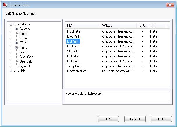 Navigation Area (Left side of dialog box) Shows categories of configuration variables in a tree-structured list. The categories displayed depend on where the system editor is opened. If you open the dialog box by clicking the System button in the AM:Preferences tab of the Options dialog box, it shows all categories. If you open the dialog box from the Fit Representation dialog box, or the Tolerance Method dialog box, only the relevant categories appear. |