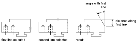 You can chamfer a corner by specifying the distance on one side of the chamfer and the chamfer angle.