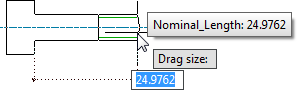 You can configure more than one dimension to obtain values by dragging. In such a case, AutoCAD Mechanical toolset prompts you for each drag operation sequentially. The tooltip provides information on the dimension you are dragging.