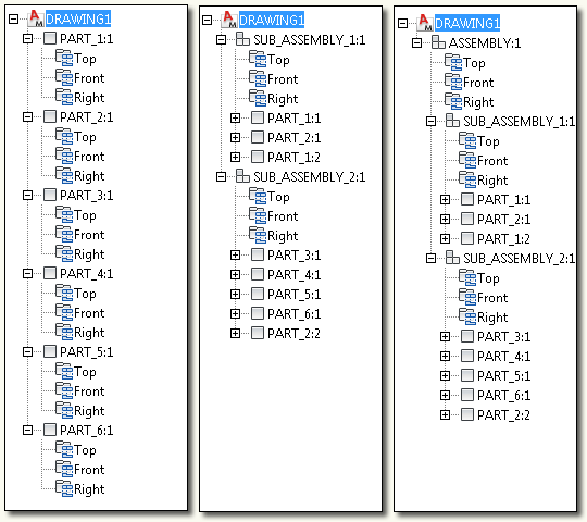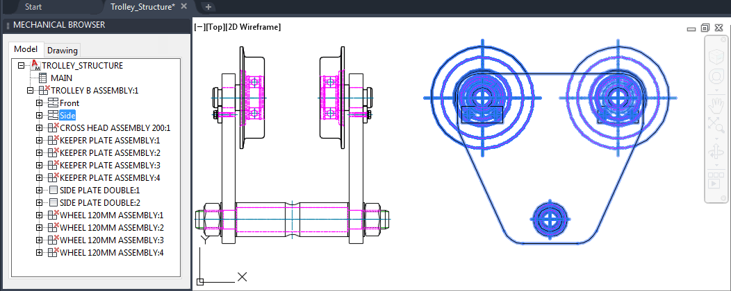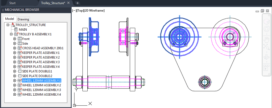 Each component has at least one component view. In this example, the assembly component, TROLLEY B ASSEMBLY, has two component views.