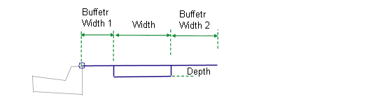 The links for the inside buffer zone, sidewalk, and outside buffer zone are inserted outward from the attachment point at a horizontal slope. The buffer zones may be omitted by setting their widths to zero.