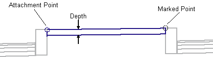 The top of median link is inserted between the attachment point and marked point. If a non-zero Depth is given, the bottom of median link is inserted parallel to the top, and vertical links are added to close the shape.
