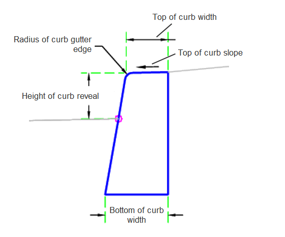 In layout mode, this subassembly draws the curb shape as specified by the input parameters.