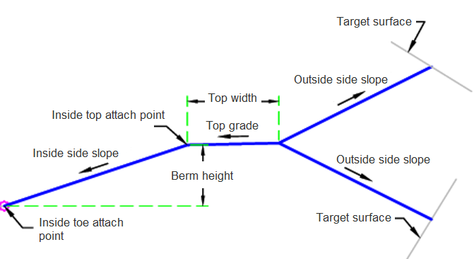 | Attach Point | Attach point where the berm will be built from. | Inside Toe / Inside Top | Inside Toe |