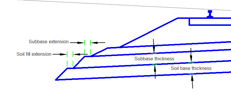 The Minimum Ballast Depth value applies at the location of the minimum clearance between the tie and subballast. The Subballast Top Slope parameter independently controls the subballast top slope . The Baseline to Subballast Crown parameter controls the location of the subballast crown.