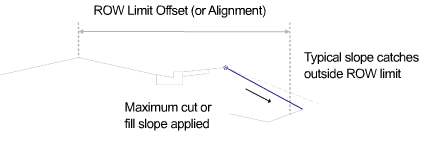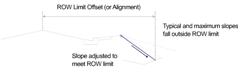 If the typical slope does not fall within the ROW (right-of-way), then a steeper slope is used. If the steeper slope still does not fall within the ROW, the user has options for controlling the behavior.