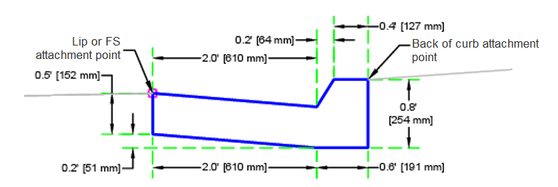 The CaltransCurbs subassembly inserts links to create curbs and gutters based on Caltrans Standard Plan RSP A87A.