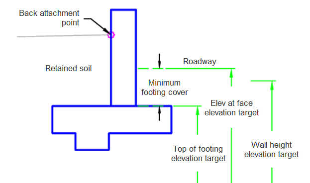 | Minimum Footing Cover | For Back facing, this parameter determines the height above the footing if no Elev At Face elevation target is set. | Numeric, positive |